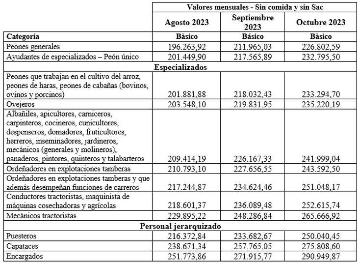 ¿Cómo quedó la nueva escala salarial para los rurales?