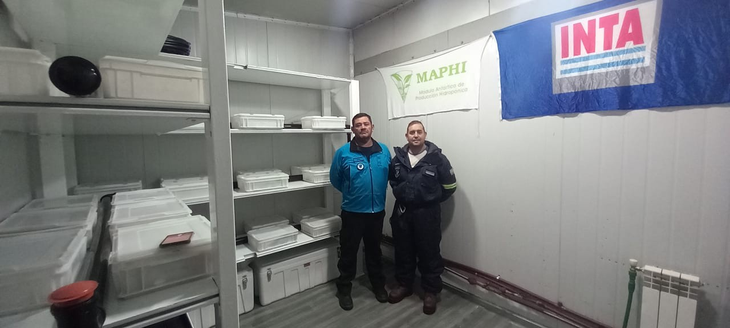 El director del Centro Regional Patagonia Sur del INTA, acompañado por Fabián Boyeras (INTA Tierra del Fuego), Emiliano Olmedo (gobierno de Tierra del Fuego) y Jorge Alberto Birgi (pionero del proyecto), visitó recientemente las instalaciones en Marambio.