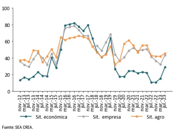 Desde 2012, el universo CREA difunde el Índice de Confianza del Sector Agropecuario, un indicador se construye a partir de las opiniones de los empresarios agropecuarios que integran el movimiento en relación a la economía nacional, sectorial y al contexto financiero y económico empresarial.
