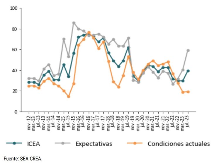 “El ICEA comienza a registrar una recuperación que, dado que la percepción sobre las condiciones presentes se mantiene entre las más bajas de la serie, es casi enteramente explicada por las expectativas a futuro. Sin embargo, la mejora en las expectativas es menor a la que se observó en las elecciones de 2015”, concluye el reporte.