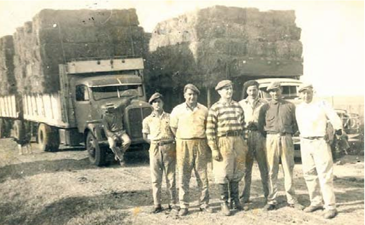 Enfardando el primer corte de primavera, base del negocio familiar por esos años. Foto: "Los Grobo 25 años imaginando y construyendo el futuro".