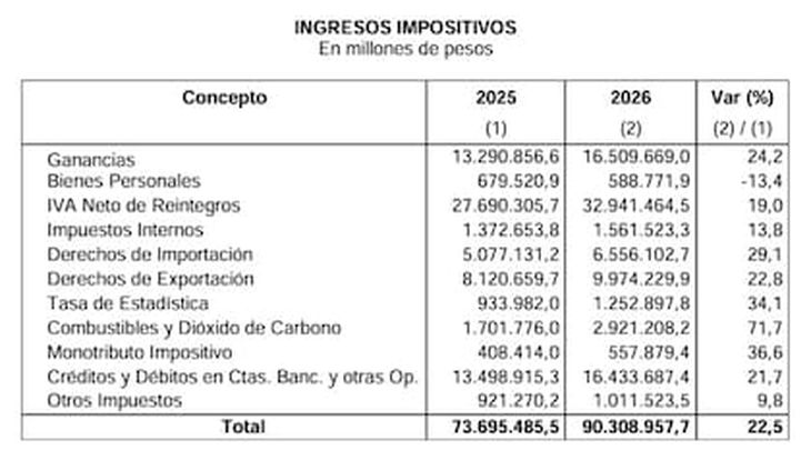 El Gobierno nacional confirmó que las retenciones a las exportaciones continuarán vigentes en el Presupuesto 2026 y, de acuerdo con el proyecto de presupuesto presentado este lunes por el presidente Javier Milei, generarán un incremento del 22,8% en la recaudación impositiva. El cálculo oficial estima ingresos por $9,97 billones, equivalentes a unos US$6800 millones, lo que ubica a este tributo como el cuarto en importancia dentro de los recursos del Estado nacional, detrás del IVA, Ganancias y el impuesto a los Créditos y Débitos Bancarios.