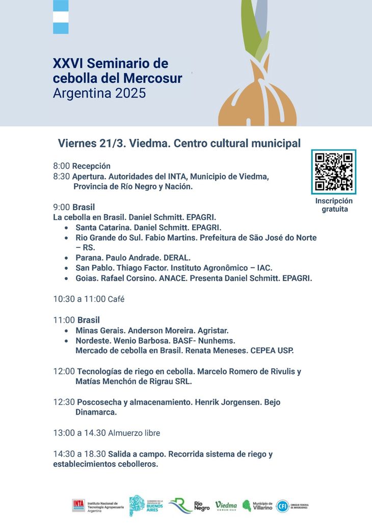 Con la participación de expositores provenientes de Brasil, Perú, México, Chile y Alemania, el seminario se posiciona como un espacio estratégico para el intercambio de experiencias y el fortalecimiento de la cooperación en el sector cebollero. Uno de los ejes centrales del encuentro será la apertura de nuevos mercados para reducir la dependencia de Brasil, que actualmente absorbe cerca del 90% de las exportaciones de cebolla argentina.