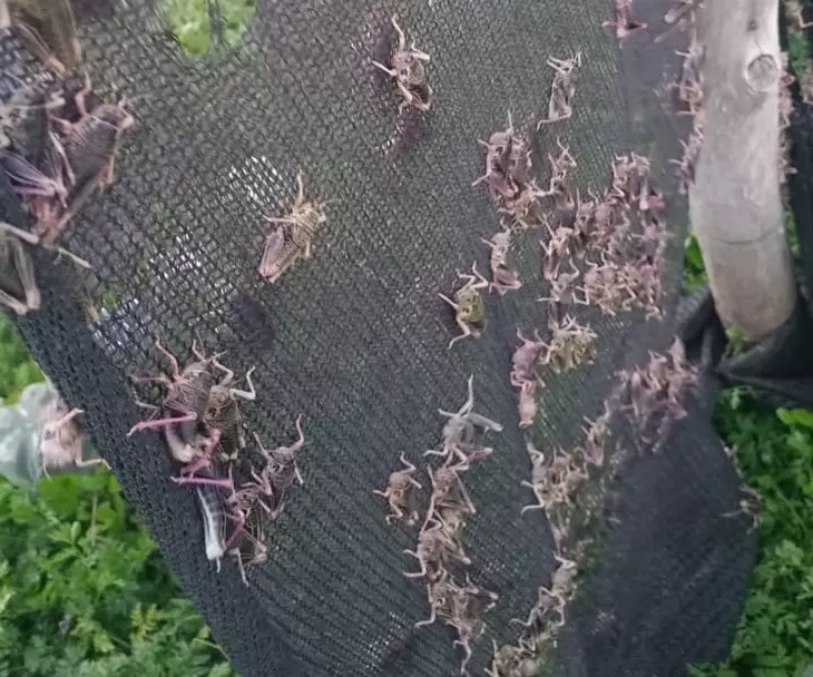 En Cushamen, la Comunidad Mapuche-Tehuelche, junto al INTA Esquel, INTA Bariloche, Senasa y la Cooperativa Cosertec, prueban con éxito una aspiradora gigante de tucuras que captura miles de ejemplares por hora sin usar agroquímicos cerca de viviendas y cursos de agua.