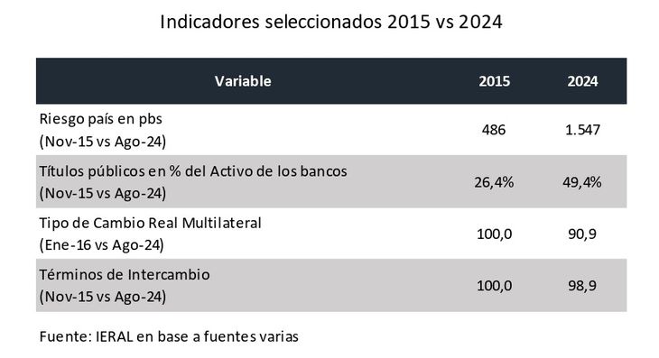 Ilustra este punto el hecho que el actual nivel del riesgo país, en torno a 1500 puntos, contrasta con 480 puntos que se registraban a fin de 2015 en medio del traspaso de mando presidencial. No sólo eso, la acumulación de deuda pública en los últimos cinco años y la falta de demanda genuina del mercado llevó tanto a la gestión anterior como a la actual a generar fuertes incentivos para que las entidades financieras se convirtieran en demandantes de bonos, y la consecuencia de esta política es que hoy casi el 50 % del activo de los bancos está aplicado a títulos públicos, un ratio que en 2015 era del orden del 28,0%.