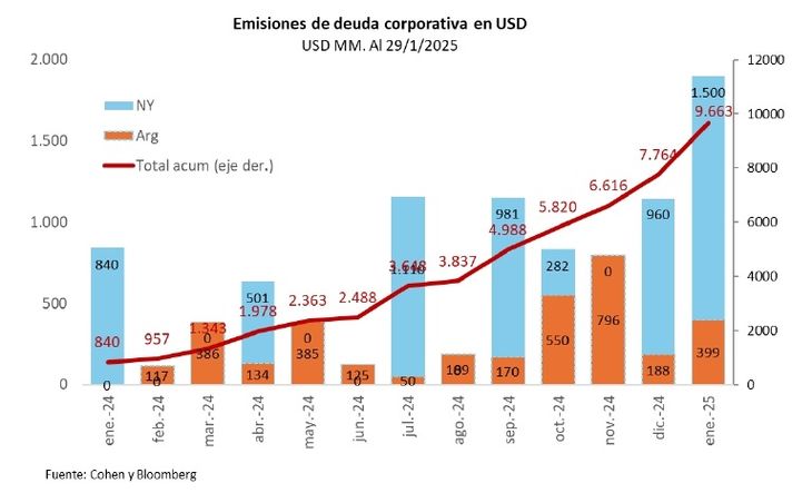 La financiación al sector corporativo alcanzó los 18.500 millones de dólares desde principios de 2024 al cierre de enero de 2025.