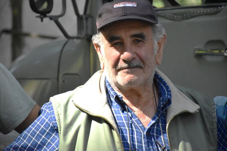 En la calle de acceso a la chacra se cruzan dos tractores. Están terminando de cargar el gris Mercedes-Benz 1114. En eso aparece su nieta, Morela, manzana en mano. Viene de uno de los cuadros donde ayuda con el etiquetado de los bines. Sus hijos, Eduardo y Carlos, andan por ahí. Uno recibe a un ingeniero que viene del galpón de empaque y arman una reunión con los cosechadores; el otro se prende en la charla. Tiene otro trabajo además de la chacra.