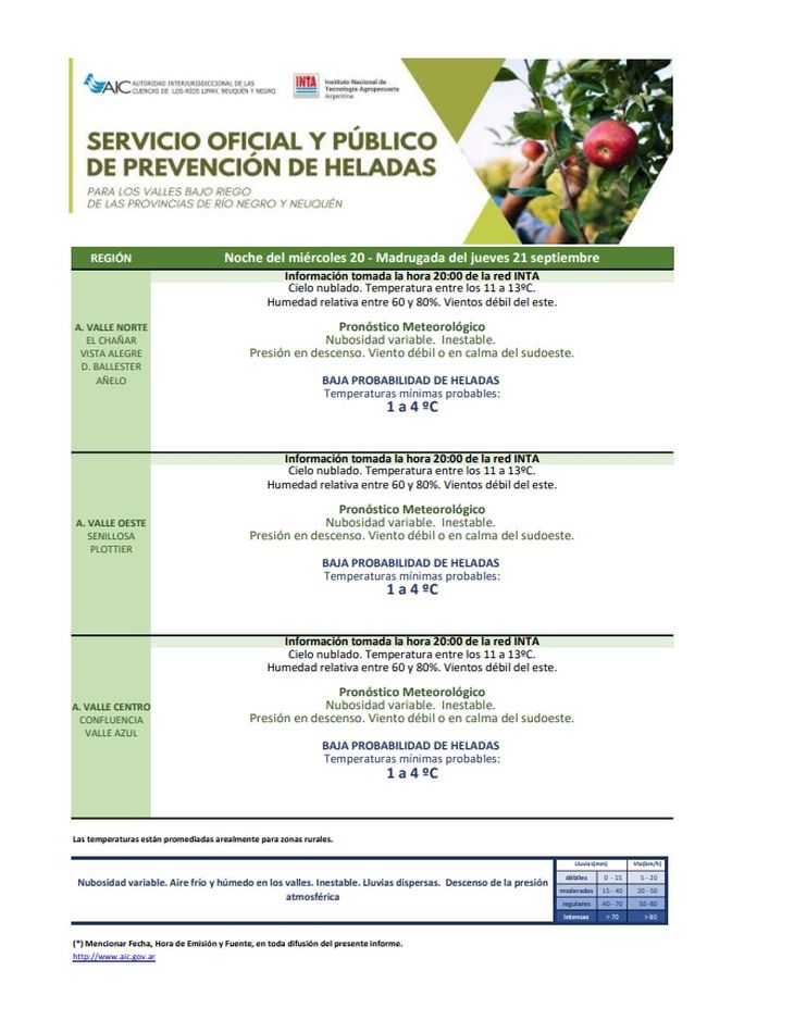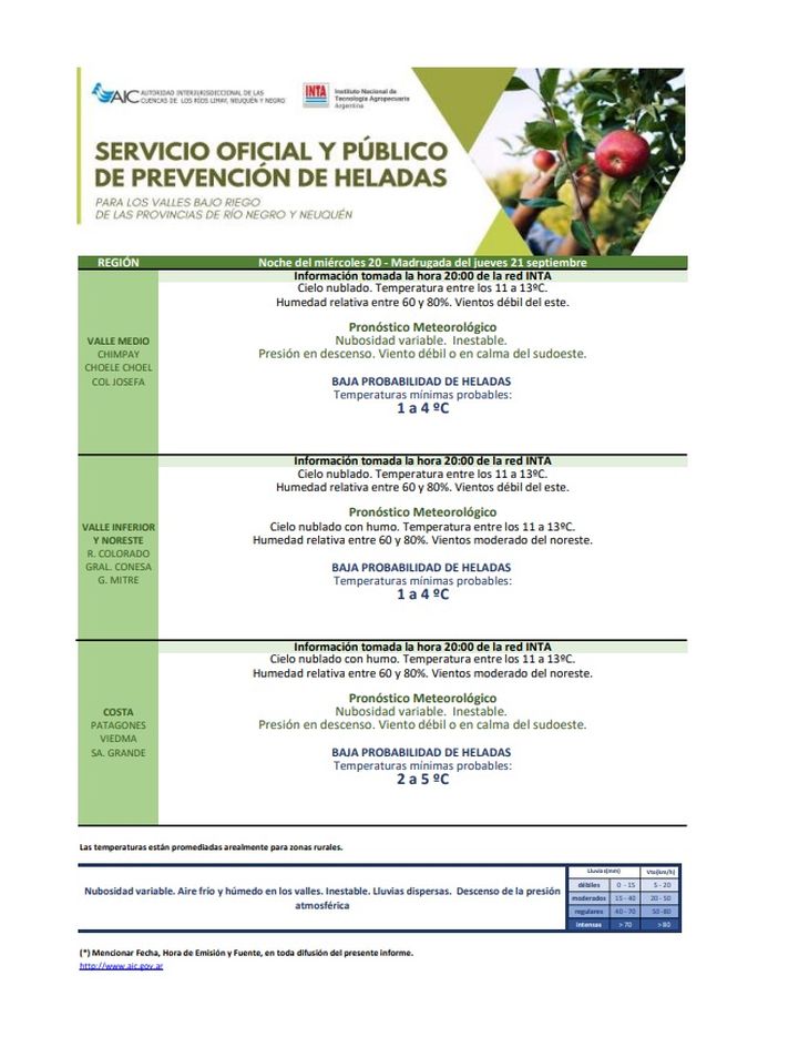 PRONÓSTICO PARA VALLE MEDIO (DE CHIMPAY A CO. JOSEFA)