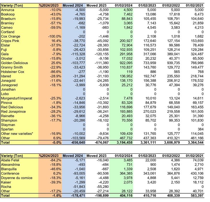 Las estadísticas fueron dadas a conocer en un reciente informe elaborado por la Asociación Mundial de Peras y Manzanas (WAPA, siglas en inglés) en el que se destaca que la caída de los stocks en Italia alcanzan al 70% en relación a febrero de 2023.