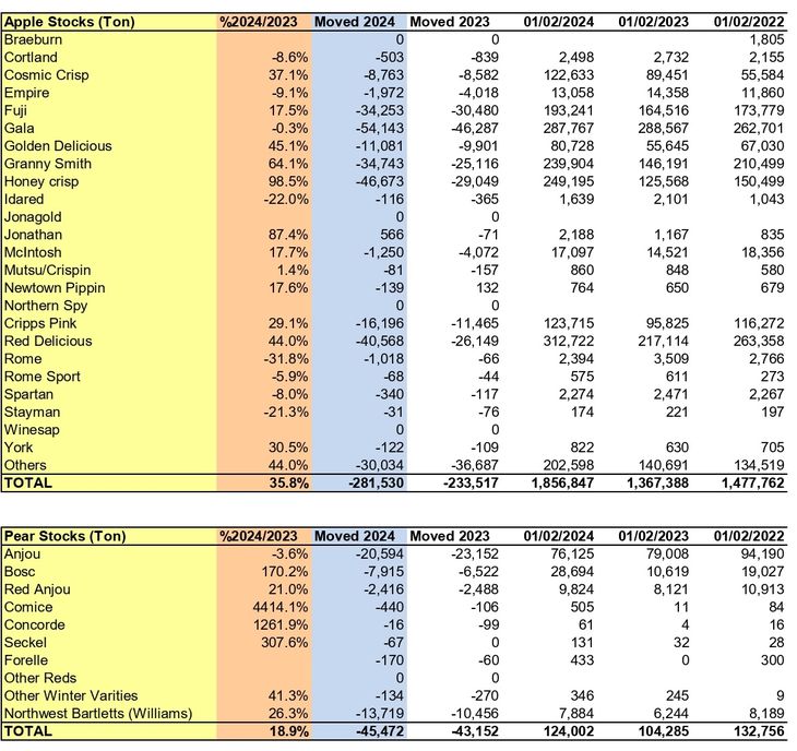 A continuación del detalle de los stocks por variedades.