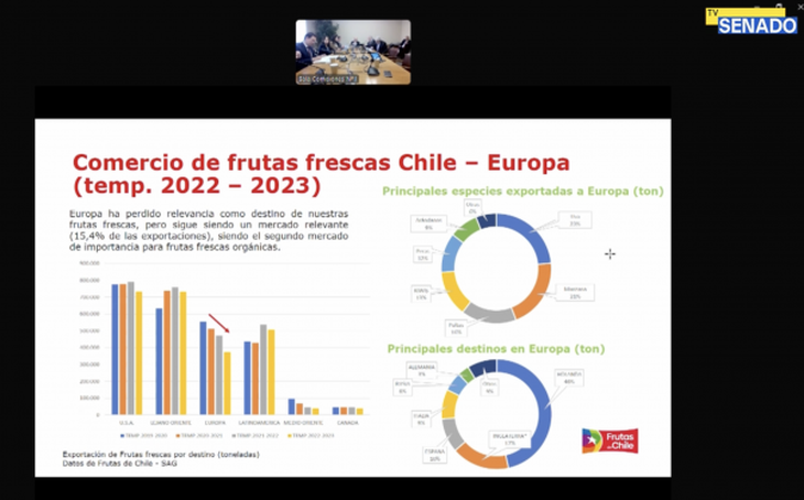 Finalmente, es importante destacar que luego de la exposición del presidente de Frutas de Chile, la Comisión de Relaciones Exteriores integrada por los senadores: Francisco Chahuán, José Miguel Insulza, Juan Ignacio Latorre, Iván Moreira y Jaime Quinta, aprobó por unanimidad el Acuerdo Marco Avanzado y Acuerdo Interino de Comercio entre Chile y la Unión Europea.