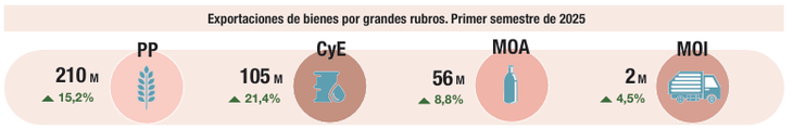 - Productos Primarios (PP): USD 210 millones, con un aumento del 15,2% interanual.