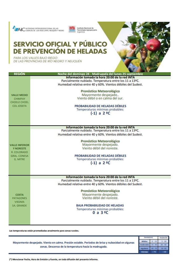 PRONÓSTICO PARA VALLE MEDIO (DE CHIMPAY A CO. JOSEFA)