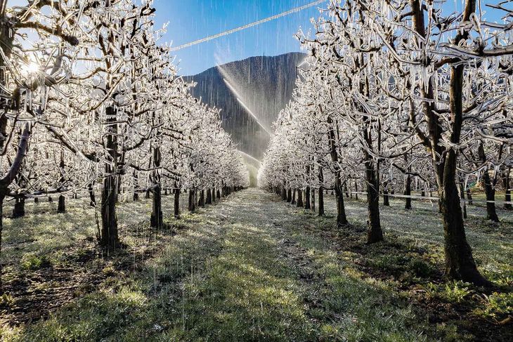 No todas las chacras se enfrentaron a la helada en igualdad de condiciones. Aquellos productores que cuentan con métodos de control activos –como el riego por aspersión, que libera calor al congelarse el agua; los ventiladores que mezclan el aire frío con capas más cálidas; o los generadores de calor instalados en los montes frutales– lograron mitigar parcialmente los efectos negativos.