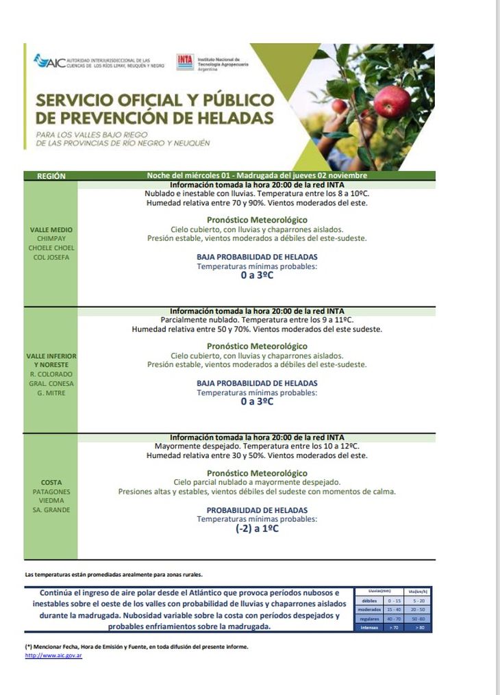 PRONÓSTICO PARA VALLE MEDIO (DE CHIMPAY A CO. JOSEFA)