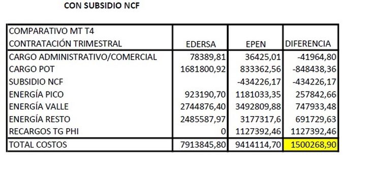 Marcadas diferencias entre las tarifas del EPEN y EDERSA