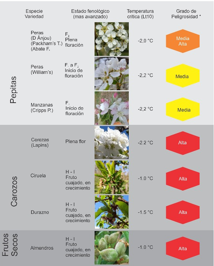 Dicho de otro modo, estamos en un período, sobre todo de frutales de pepita, donde todavía el daño puede darse sobre las flores, pero no necesariamente sobre la producción.