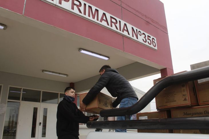 Escuelas neuquinas -sobre todo, de la ciudad capital- están recibiendo en estos días frutas provenientes de las chacras del Valle. En este marco, ayer se entregó una nueva partida en la Escuela Primaria 366.