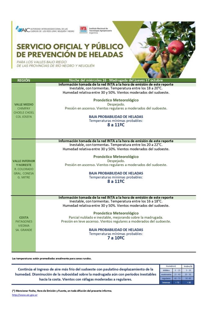 PRONÓSTICO PARA VALLE MEDIO (DE CHIMPAY A CO. JOSEFA)