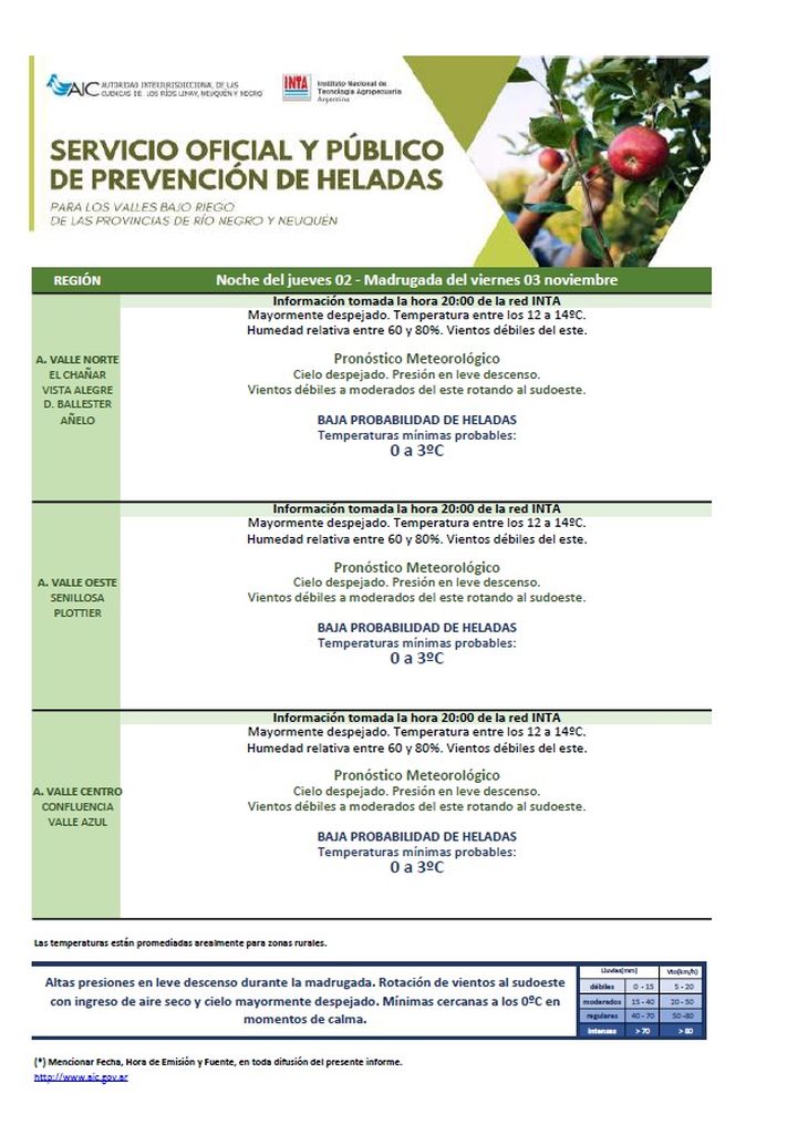 PRONÓSTICO PARA VALLE INFERIOR Y NORESTE (RÍO COLORADO, CONESA, GUARDIA MITRE)