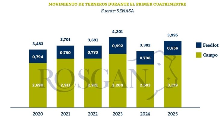Lo destacable de esta tendencia es que se da en momentos en que el feedlot también muestra muy buenos niveles de ocupación. De acuerdo a los datos informados por el mismo SENASA, al 1ro de mayo de 2025 el stock de animales registrados en establecimientos de engorde a corral ascendía a 1,93 millones de bovinos, lo que representa un 10% más que el nivel de encierre reportado a igual fecha, un año atrás. Es decir que, no se trata de una puja directa entre campo y feedlot sino, por el contrario, de la consolidación de una etapa complementaria y potenciadora de la terminación a corral.
