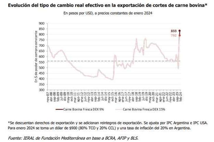 Fuente: estudios "Luego del récord de envíos del 2023, ¿seguirán creciendo las exportaciones de carne bovina este año? elaborado por Juan Manuel Garzón y Franco Artussom. IERAL de Fundación Mediterránea. www.ieral.org . Año 29 - Edición Nº 239 – Enero de 2024.