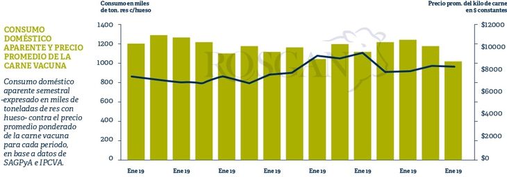 Recordemos que, en el caso de la carne vacuna, el nivel de consumo viene retrayéndose significativamente, consecuencia no solo del menor poder de compra sino también a causa de la fuerte competencia de precio que ejercen otras carnes sustitutas, más económicas, como el pollo y el cerdo.