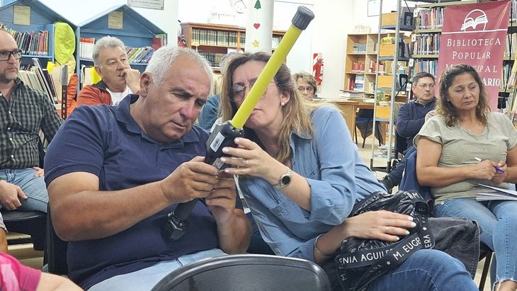 Al finalizar la charla, el representante de una veterinaria local donó uno de esos bastones a la Sociedad Rural local, para que se haga un uso compartido de esa herramienta entre los productores locales.