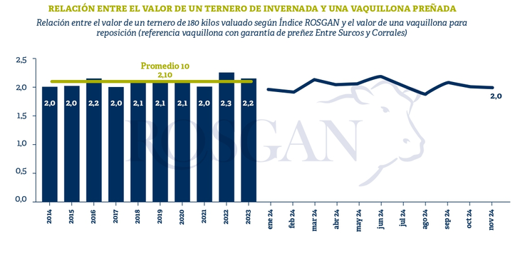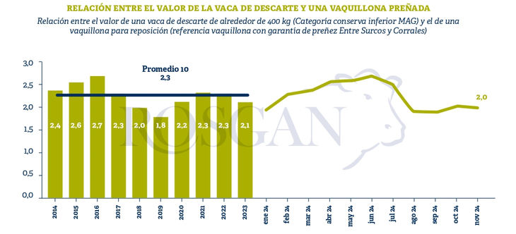 Aun así, desde el punto de vista del criador, hoy reponer un vientre joven mediante el refugo de vacas, implicaría destinar 2 vacas flacas por cada vaquillona preñada, relación que en los últimos 10 años ha marcado un promedio de 2,3.