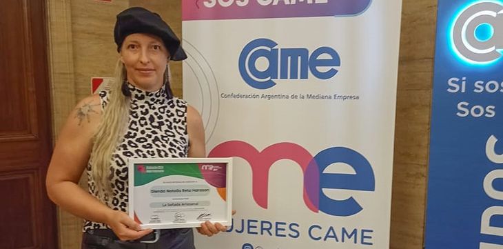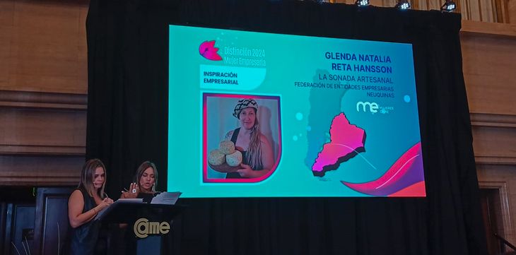 Glenda Hansson, una tambera y emprendedora de Rincón de los Sauces, fue galardonada con el premio a la "Inspiración Empresarial" por parte del sector de Mujeres Empresarias de la Confederación Argentina de la Mediana Empresa (Mecame).