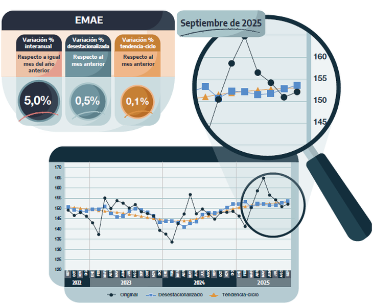 Con esta foto sobre la mesa, el dato consolidado de septiembre confirma la recuperación sostenida del nivel de actividad durante el año 2025, con ocho meses consecutivos de crecimiento interanual y un acumulado anual que ya supera el 5%.