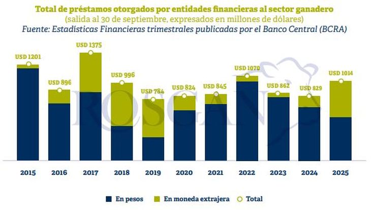 Los datos publicados por el Banco Central de la República Argentina (BCRA) sobre los saldos de préstamos contraídos por empresas ganaderas muestran, al cierre del tercer trimestre, una expansión interanual en dólares superior al 20%.