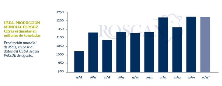 De cara a la próxima campaña, aun en contexto de elevada oferta mundial, el mercado comienza a afirmarse tras conocerse las últimas proyecciones publicadas por el Departamento de Agricultura de los Estados Unidos (USDA) en las que ajusta la producción de maíz para el nuevo ciclo a 1.219 millones de toneladas, 5 millones menos respecto de las cifras estimadas previamente.