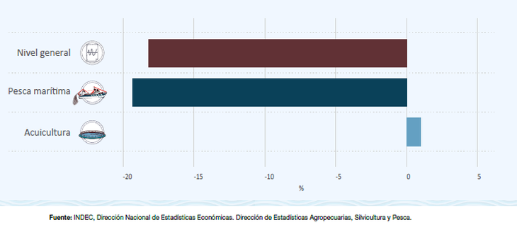 En contraposición, la acuicultura mantuvo una trayectoria de crecimiento sostenido. Este sector registró un incremento del 5,1% en la comparación interanual de noviembre.