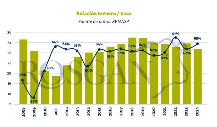 Puesto en números, sobre un stock aproximado de 22 millones de vacas, compensar esta caída mediante una mayor producción de terneros, implicaría mejorar la relación ternero/vaca en unos 5 puntos porcentuales; es decir, pasar del 65% a algo más del 70% de destete, luego de varios años amesetados en torno al 63%.
