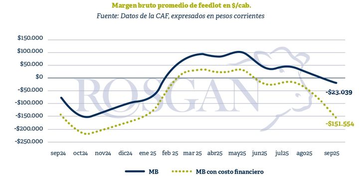 Cabe recordar que los feedlots ya vienen operando con márgenes negativos desde hace varios meses, afectados no solo por una ajustada relación de compra-venta de la hacienda, sino fundamentalmente por el fuerte incremento de tasas financieras que aumenta significativamente el costo del capital de trabajo asociado a este tipo de actividad.