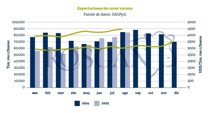 En este contexto, la semana pasada se dieron a conocer los datos de exportación de carne vacuna correspondientes al mes de agosto, que reflejan una importante recuperación del sector exportador. La reciente reducción parcial de las retenciones, junto con la mejora del tipo de cambio, ha permitido que las exportaciones comiencen a consolidarse en un mercado internacional con alta demanda.