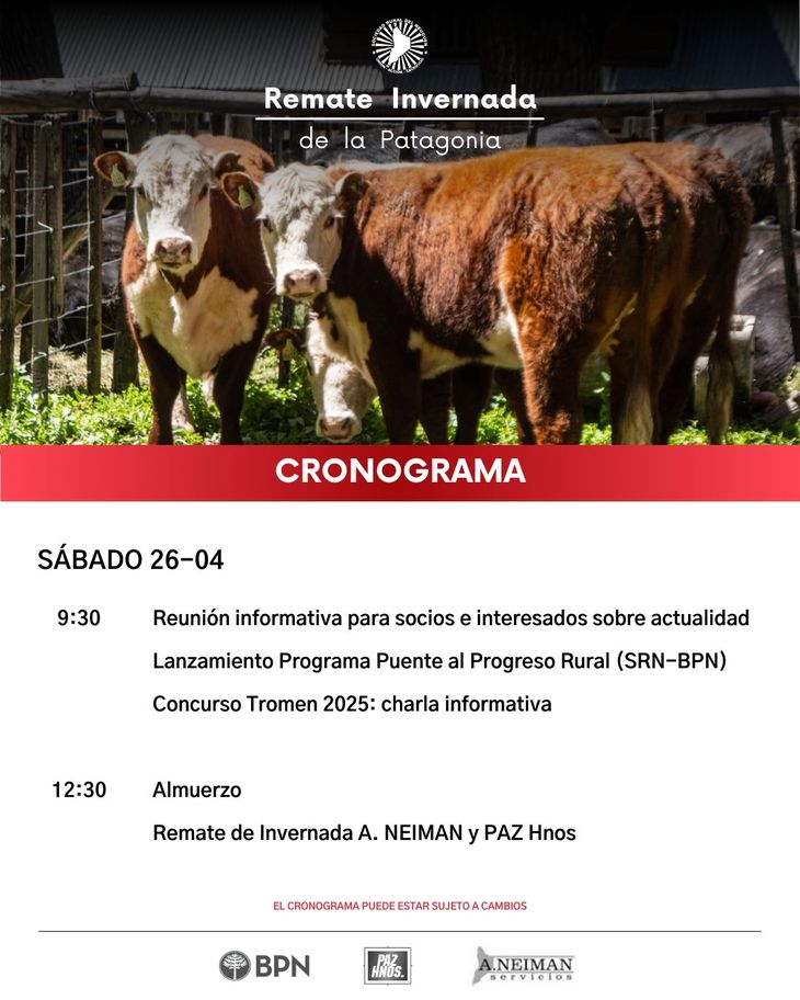Junín de los Andes se convertirá nuevamente en el epicentro de la actividad ganadera neuquina este fin de semana con la realización de un nuevo remate de invernada. El evento, organizado por la reconocida firma Neiman en colaboración con la Sociedad Rural del Neuquén (SRN), tendrá lugar el sábado 26 de abril a partir de las 15 horas en las instalaciones de la SRN, ubicadas en el acceso a la localidad.