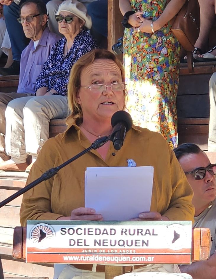 La 82ª Expo Rural de Neuquén está llegando a su fin y el domingo es el día de los discursos. En este marco y ante tribunas colmadas y autoridades atentas, la presidente de Sociedad Rural de Neuquén (SRN), Cecilia de Larminat, hizo un repaso por el presente del sector. Se refirió a la emergencia ígnea, a la baja de retenciones, a la barrera sanitaria y al complicado tema de la tenencia de tierras.