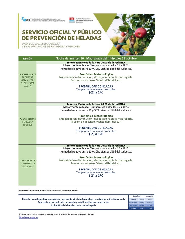 Pronóstico de heladas para los valles bajo riego de Neuquén y Río Negro 10-10-2023