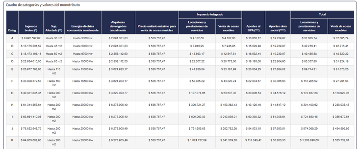 Por medio de una barra que se completa en base a la facturación, se puede observar de una manera sencilla si se superó o no el tope de facturación de la categoría en la cual se encuentra inscripto.