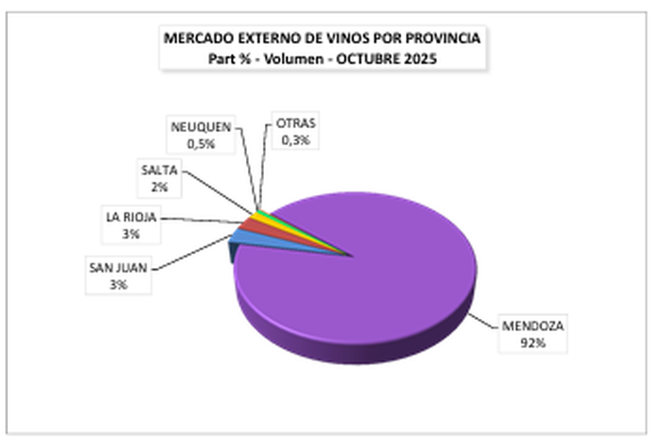 En octubre de 2025, las exportaciones totales de vinos y mostos de Argentinas experimentaron una contracción significativa, según el informe provisorio del Instituto Nacional de Vitivinicultura (INV). El volumen total de vinos exportados alcanzó los 174.234 hectolitros (hl), lo que representa una variación negativa del -9,6% en comparación con los 192.687 hl de octubre de 2024.