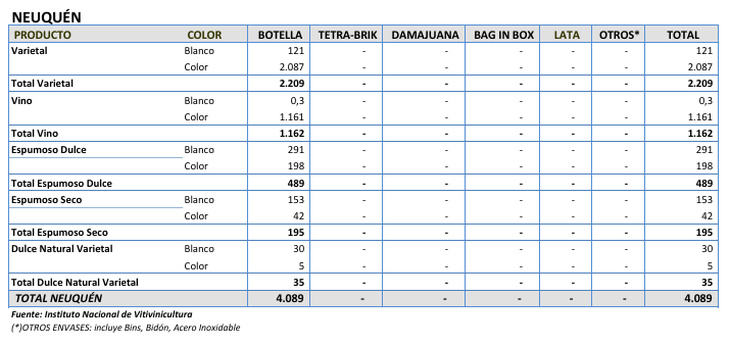 - Chubut, la provincia más austral, contribuyó con un volumen testimonial de 3,8 hl, también enfocado en vinos varietales y espumosos embotellados.