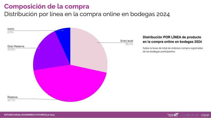 Ticket promedio y hábitos de compra: El ticket promedio por compra fue de $94.505, con una media de 11,28 botellas por orden, un incremento respecto a las 10,25 botellas de 2023. Este dato refleja un interés creciente por compras más voluminosas, incentivadas por descuentos y facilidades de pago. Las bodegas aplicaron un descuento promedio del 20,44%, y el 44,8% de las compras se realizaron en cuotas, un factor clave en un contexto económico desafiante.