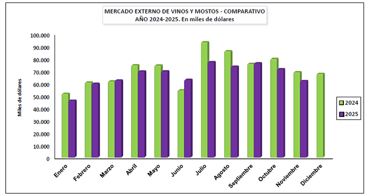 - Vino a granel: Profundizó su caída con un -11,7% en volumen.
