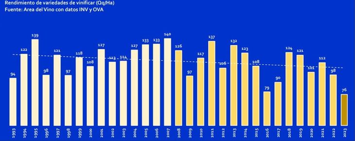 Sin embargo, más allá de la sustitución en los últimos años parece existir una merma considerable (8 de 16 temporadas por debajo de 110 quintales) que puede estar obedeciendo a otras causas como fenómenos climáticos adversos recurrentes y una menor inversión en mantenimiento de viñedos. De continuar así la escasez por la que atraviesa el sector puede ser más permanente que coyuntural.