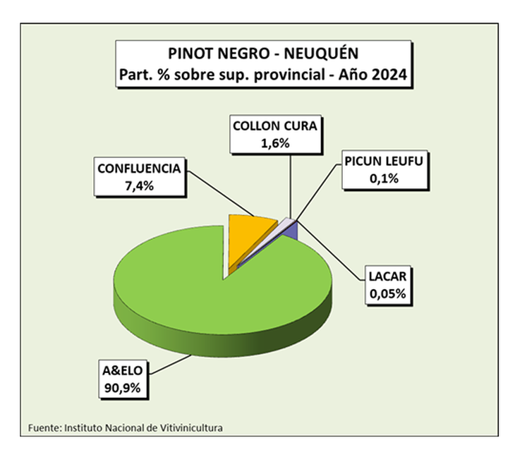 La segunda provincia en superficie cultivada de esta variedad es Neuquén y los departamentos con mayor cantidad de hectáreas son Añelo (90,9%) y Confluencia (7,4,%), le siguen Collón Curá, Picún Leufú y Lacar.